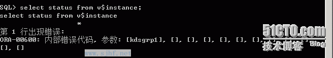 2.2 查询实例状态,数据库报ora_00600错误;进行其他查询,其中一些查询可以进行,一些查询报错,而且报错都是ora_00600错误。